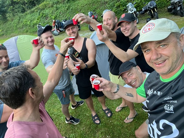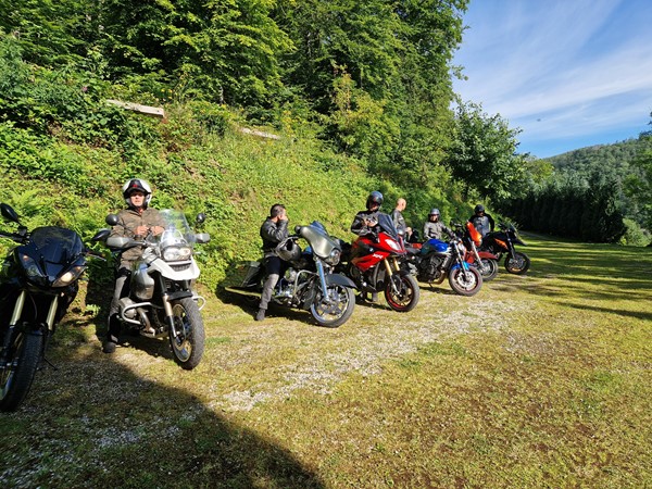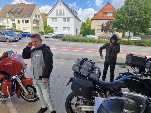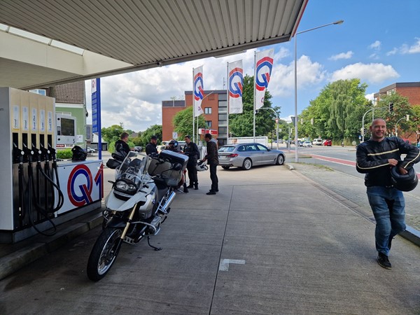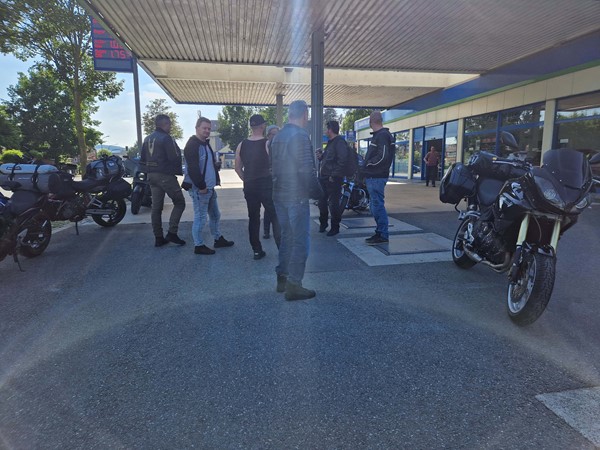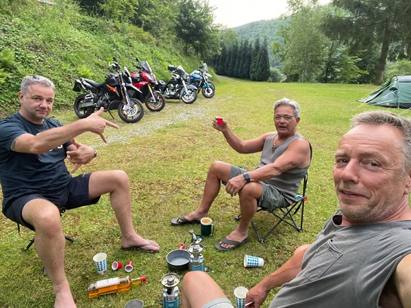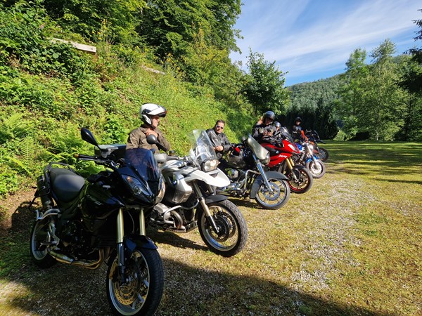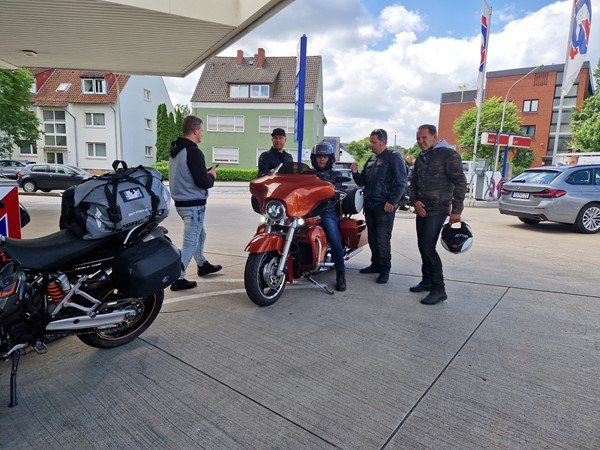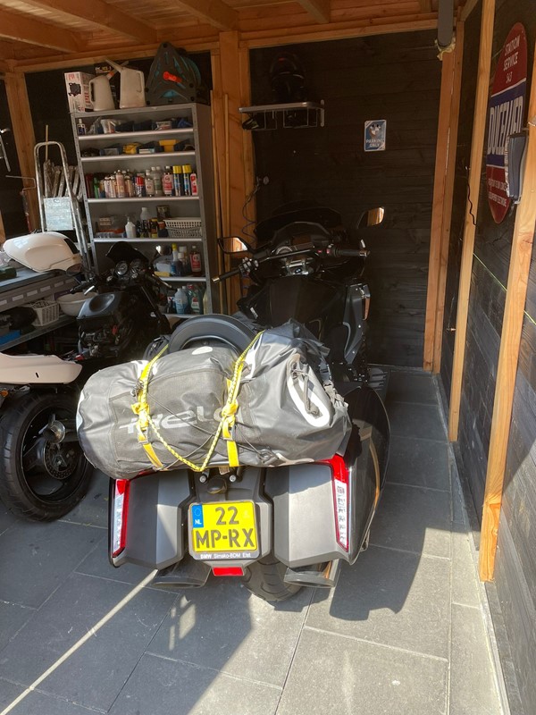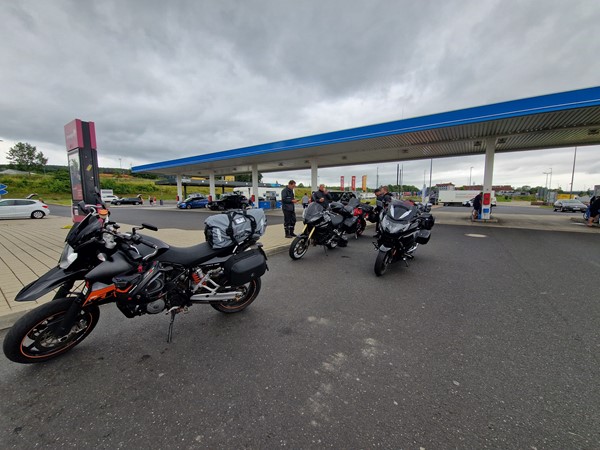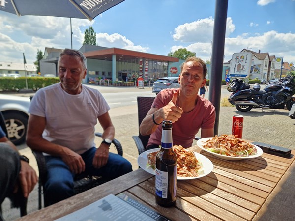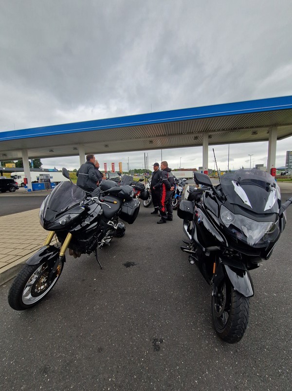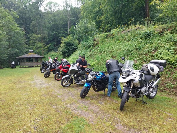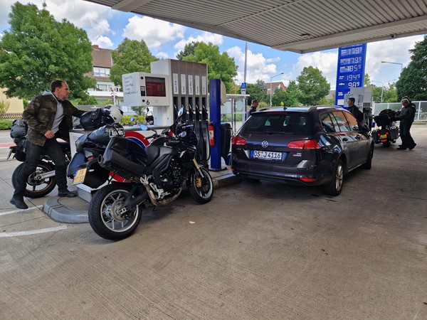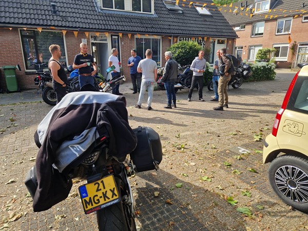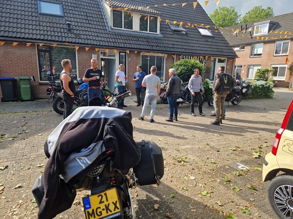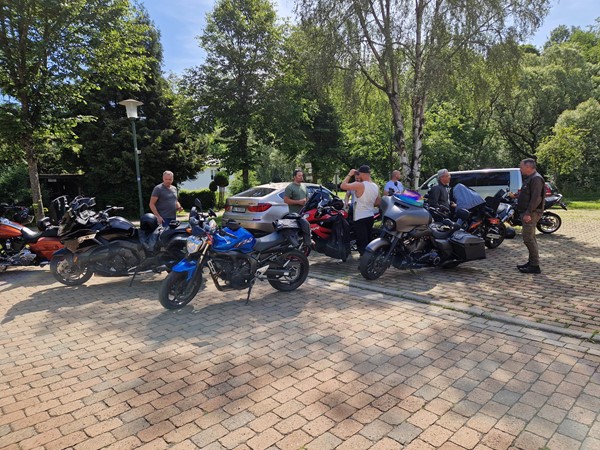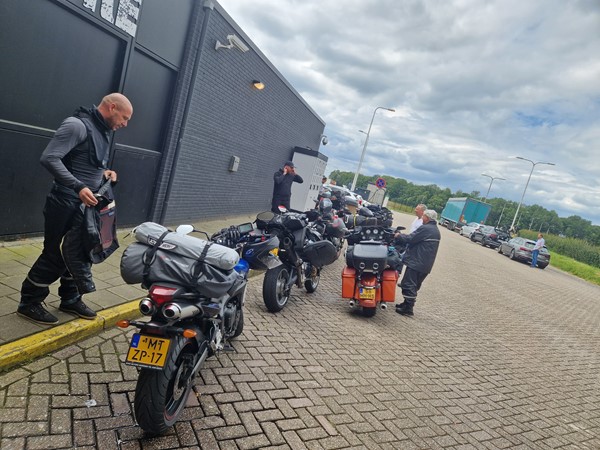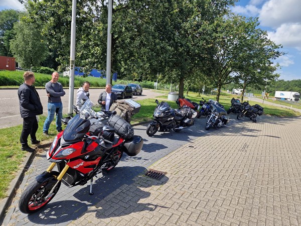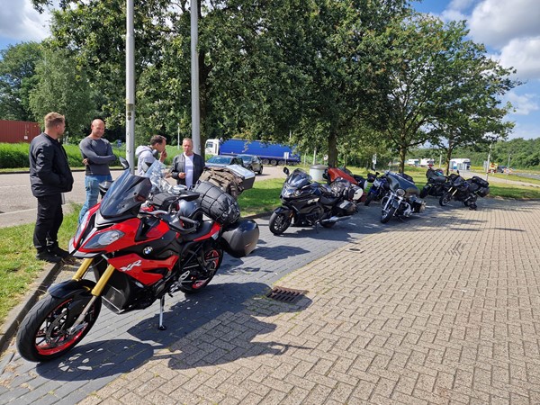 Job (K1600B), Ron (Tractor), Brian (Tractor), Johnny (R1200 GS), Steef, Paul (990 SM), Ferry (1000XR), Bart (Tractor) & Jerrold (Tiger 1050).