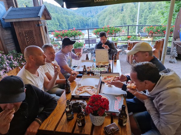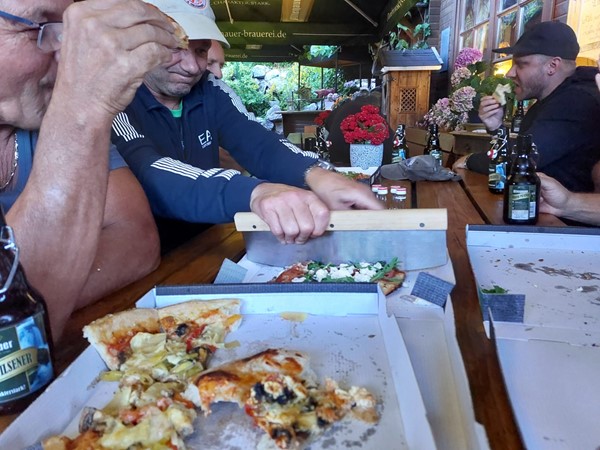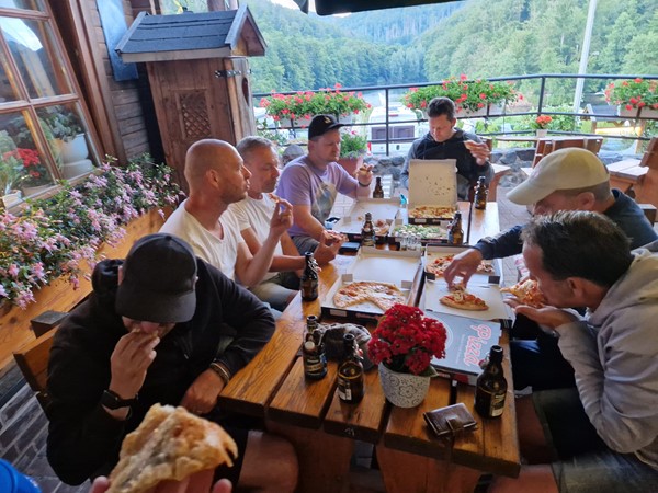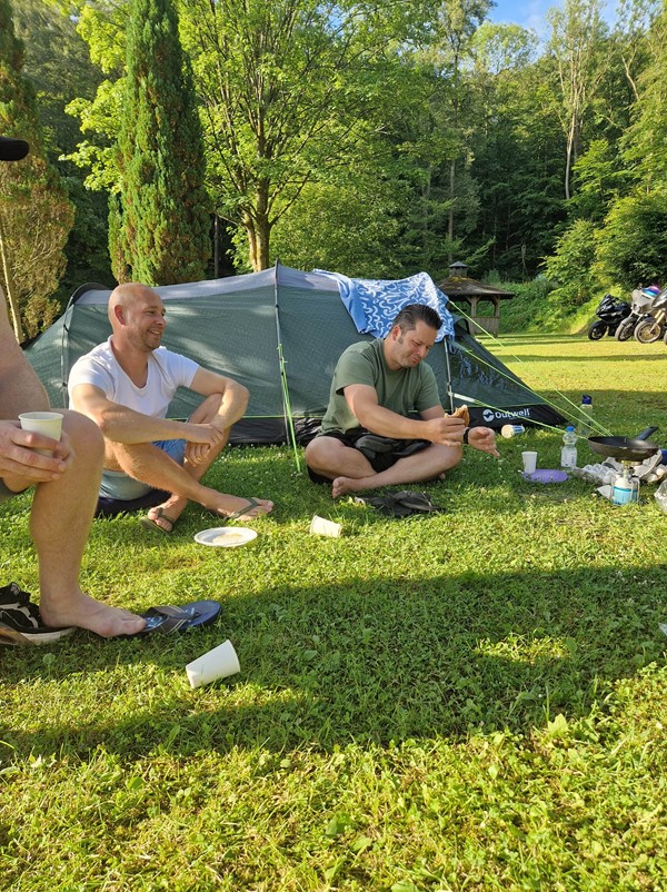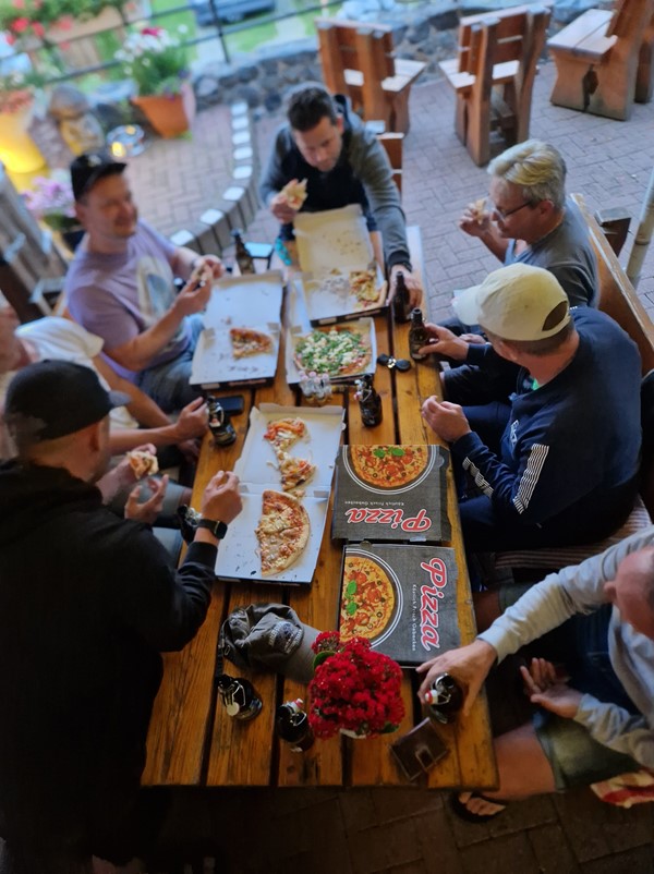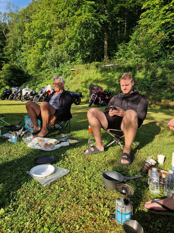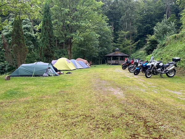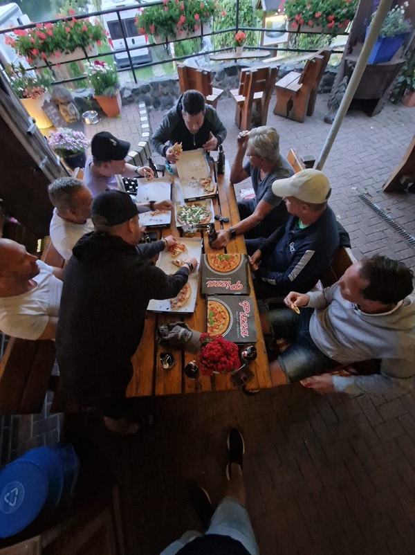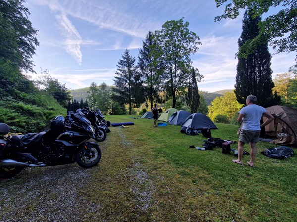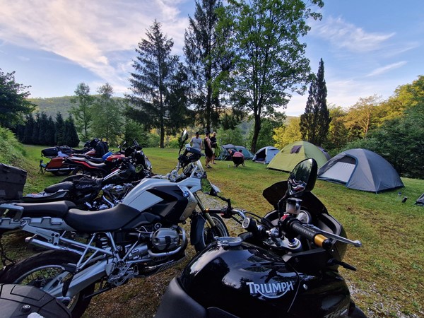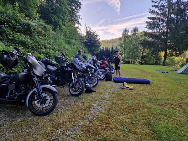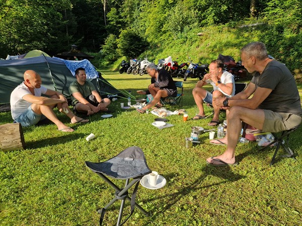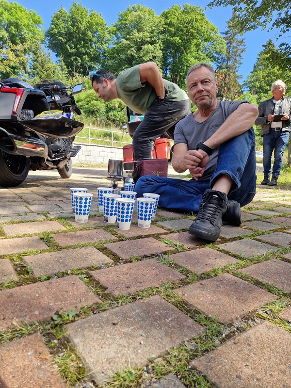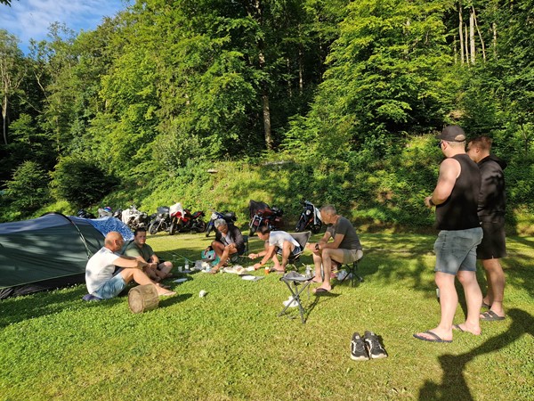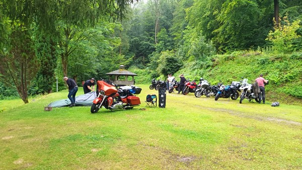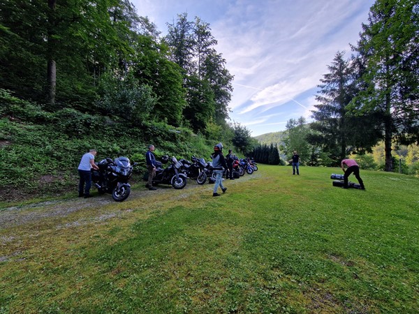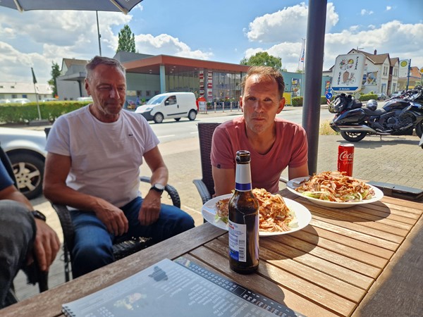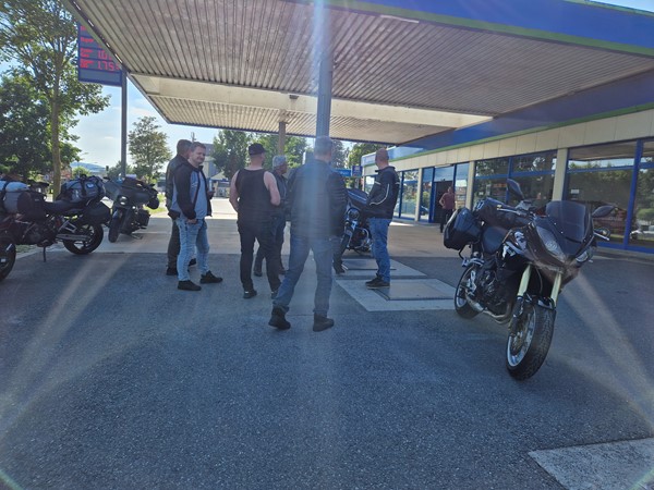 Job (K1600B), Ron (Tractor), Brian (Tractor), Johnny (R1200 GS), Steef, Paul (990 SM), Ferry (1000XR), Bart (Tractor) & Jerrold (Tiger 1050).